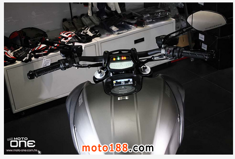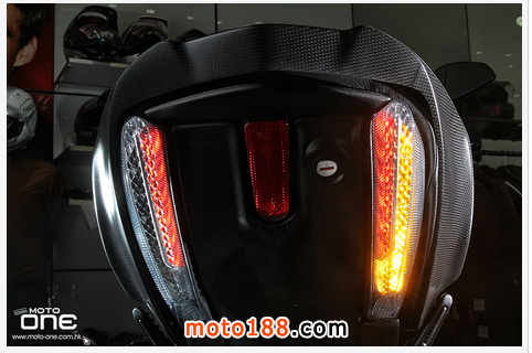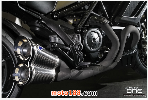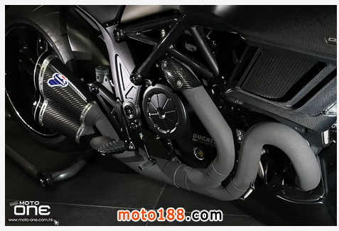至於DIAVEL Titanium鈦合金版有甚么特別?正如她的型號一樣,油缸外殼及頭燈罩均是採用鈦合金製造,并於車身多處採用輕量的碳纖維部品,DIAVEL Titanium凈重為205kg,與標準版210kg偷輕了5kg,顯示出鈦合金與碳纖維的優質之處。而左右側置式散熱水箱保護蓋及入風口的體積也較其 她版本闊大,加強了車頭的肌肉感。縫制精美的座墊配以TITANIUM(鈦合金)的徽章,碳纖制尾乘客的座蓋也是重新設計,其較闊的面積與車頭的入風口互 相呼應。L2引擎的黑色排氣管採用了陶瓷涂裝(Ceramic coating),尾截的消聲器配以掃漆紋的不銹鋼。