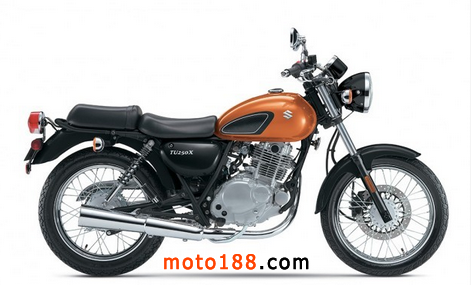 鈴木復古車型TU250X在2016款車型上也換上了新的橘/黑涂裝,這臺249cc的風冷單杠車型售價依舊保持在4,399美元。相比前文介紹的車型,TU250X就要簡單了很多,較低的坐墊高度能夠適應很多入門級車手。新款車會在7月底到店銷售。