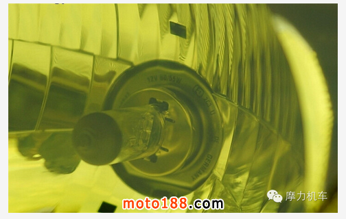 近遠燈的切換,就如圖中是靠不同燈絲對應不同反射面,開啟遠燈后,近燈的燈絲就會熄滅,以避免用電過大;另外車主將燈具貼上燈膜,除了可以改變燈色讓穿霧性增強以外,同時也可保護燈具,避免小石頭直接撞擊導致刮痕產生。