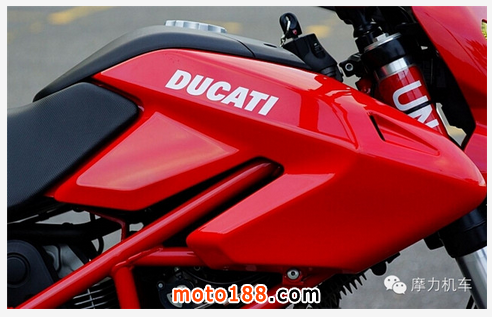 接著看到被稱為 L 型雙缸的 V型90度雙缸引擎,這顆由 DUCATI 制作的雙缸引擎,在 8000rpm 時能爆發出 81hp 的馬力數值,而在 6250rpm 時則能提供 7.7kg-M 的扭力輸出,對于這樣輕量化的車體而言,帶來的樂趣已經非常多。