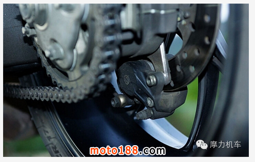 后碟盤則位于齒盤后方,為 245mm的固定碟盤,時速表的速度感應器也位于此處;而原廠對時速表的部份,也直接在原廠車主手冊說明,在儀表板上看到的時速為 +8% 于真實時速,也就是若真實騎到時速100KM/h,儀表板會顯示 108KM/h。