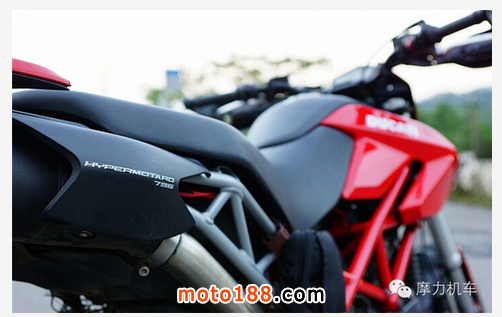 作為入門款,有著 DUCATI 熱血靈魂的 Hypermotard 796,不論是在引擎特性或者車臺輕量化,都下足了功夫,Desmodromic 氣門結構更帶來準確的氣門啟閉時間,讓動力喪失減到最低;輕量化的車臺與引擎設計,加上搭載 V 型 90 度的引擎,讓整臺車在寬度減少許多,面對重心的掌握能夠更有信心來操控,在引擎細致度上雖然沒有內鏈車種來得安靜,但是使用 ATPC 滑動式濕式離合器,雖少了特殊的招牌聲音,但是在整體噪音上下降許多,騎進巷弄間更不容易引人注目。
