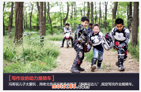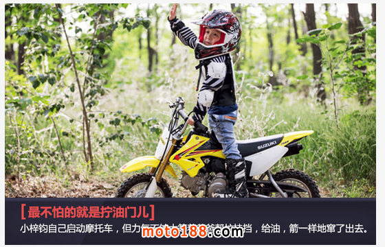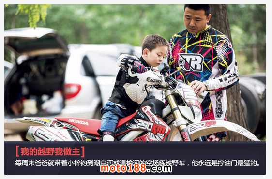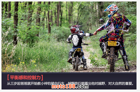 核心提示: 有種老爸愛騎摩托車,有種孩子從小看著老爸的摩托車長大,但似乎我們很難將越野摩托車和六七歲的小朋友聯(lián)系在一起??删褪怯?/div>