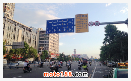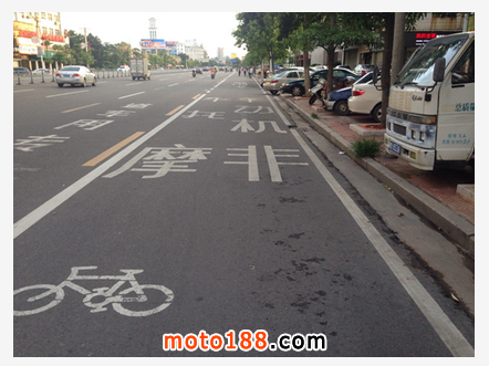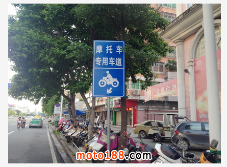 其他連接三大主干道的道路上,也增設了摩托車指示標志,豎起了“摩托車專用車道”的指示牌。