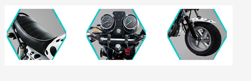 磨砂黑燈罩,防銹而美觀時尚;亮度更高,穿透力強,保證夜間駕駛更安全; 雙圓指針儀表,能輕松、精確掌握行駛狀態,保證操控方便;同時外觀采用復古設計,更彰顯個性品位; 前后采用正新真空扁平式輪12寸胎,有公路和越野兩種配置; 多種坐墊可供選擇:一種是加鉚釘;一種是裝有修飾飾條;一種是普通坐墊 。