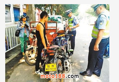 上午10點左右,記者來到位于職教中心的檢查點發現,執法人員剛好攔截到一輛“特別”的摩托車,車主為一名20歲的男子。