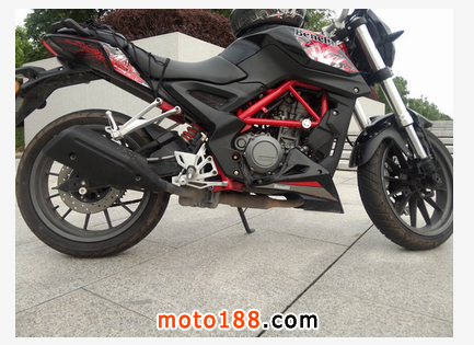 前制動/對向四活塞卡鉗,后制動/單向雙活塞卡鉗,但是小黃龍的前剎車效果欠佳。在前輪轂和減震上預留有雙碟剎盤和泵的位置,按照錢江的作風,也許以后會出個高配版的前雙碟剎也說不定。我打算改裝前雙碟剎,直接買藍寶龍300的剎車套件,因預留有雙碟的安裝位置,可以無損安裝。