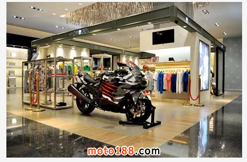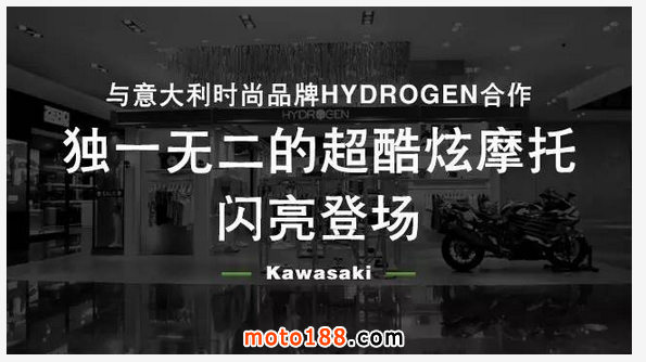 核心提示: 運動型摩托的旗艦至尊Ninjia ZX-14R,與意大利奢侈品牌HYDROGEN合作,在上海新世界大丸百貨門店閃亮登場。酷炫的車身,行云流