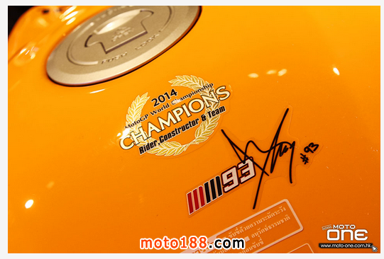●MM93 2014 MOTOGP世界冠軍圖案與馬坤斯的簽名貼紙。
