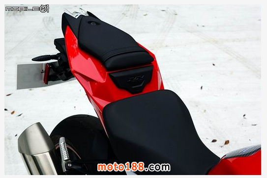 在前座后方,也有一塊方便騎士趴車加速時,能讓臀部舒適些的靠墊,上方還印有 RR 字樣,可惜 RR 不是熱血的紅色字樣,但相信有愛的車主們絕對有方法能解決這個問題的100分