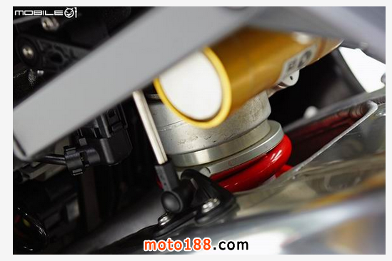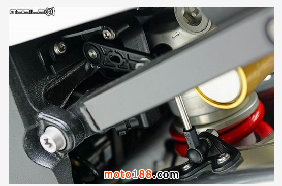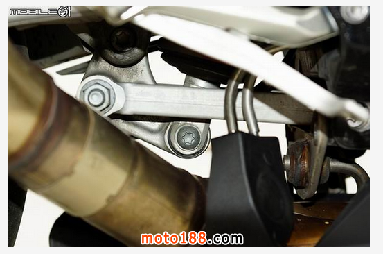 而 S1000RR 上的行車電腦如何知道后輪懸吊運作情況?靠的就是這組連桿帶動感應器,借此由感應器回傳資料給行車電腦,再讓電腦依照其他資料來調整后輪避震器設定,一切電子化調整,方便性以及科技程度絕對是給予好評,但穩定度及耐用度則需要時間考驗羅。