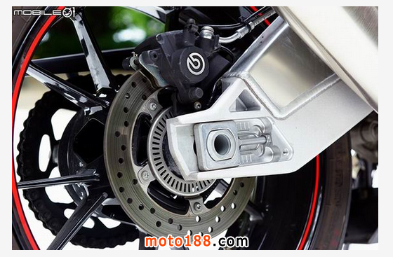 不同于前輪煞車,后輪煞車總泵采用 Brembo 制品,并且也有 Race ABS 系統輔助煞車力道分配,確保騎士不會因為煞車操作失誤造成輪胎鎖死而產生意外。