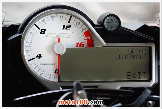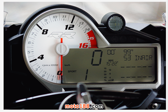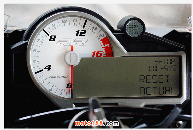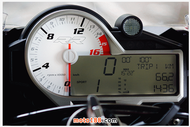 在標準模式下,只要按下左把手的 TRIP 按鈕,就可以在總里程(ODO)、剩余燃油可行駛里程(RANGE)、單趟里程 1/2 (TRIP 1/2)、平均每百公里消耗油量及平均時速等功能進行切換,其中最實用的大概就是剩余燃油可行駛里程,因為 S1000RR 并沒有配置格數油表,所以能夠得知油箱剩余油量的方法大概就屬于這個最可行,而且這個功能顯示的里程數也還蠻準確的,可以做為參考使用。