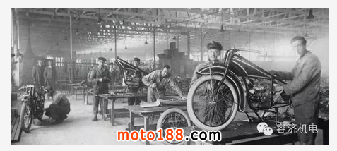 1923年,寶馬摩托車的生產車間,可以看出摩托車已經批量化生產了,而且外形和今天的摩托車基本一致了。