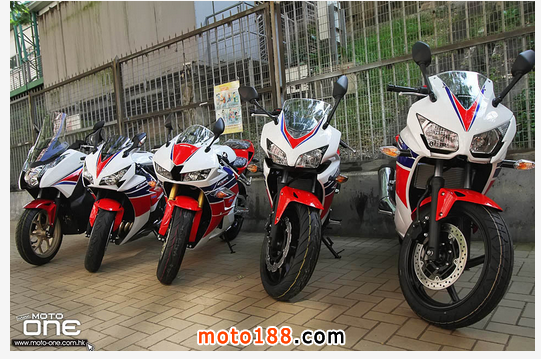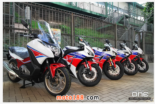 眾所周知,HONDA有兩大長青的車身拉花,分別為良好合作伙伴的RESPOL機油及HRC廠花。歷年來,兩大拉花以成為HONDA眾多車系的車身配色,廣受車迷酷愛與歡迎。最近,香港HONDA旺角陳列室難得集結(jié)HRC廠花大軍,包括NC750 INTEGRA S、CBR1000RR、CBR600RR、CBR500R、CBR300R等五款,相同的經(jīng)典紅白藍HRC拉花與300c.c.至1000c.c.不同排氣量的級別車系結(jié)合,如此有趣難得的畫面,當(dāng)然要與眾分享。