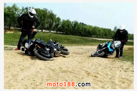 因?yàn)樽灾剌^大,重量又集中在了前半部分的“水鳥”在行駛過比較松軟的沙土?xí)r前輪會明顯感覺到陷入土中,幾次都差點(diǎn)倒車;而V-Strom 1000則較為輕松的通過,且在草地中可以自由的轉(zhuǎn)向,在轉(zhuǎn)向過程中感覺速度不夠,前輪下陷時加大油門,后輪雖會打滑卷揚(yáng)起沙土,但良好的重量分配能使得前輪輕松使出較為松軟的沙地,也不會產(chǎn)生要倒車的恐懼感。