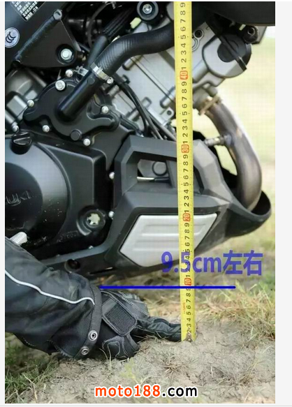 通過兩組對比可以看到“水鳥”有著11cm左右的離地間隙,成績似乎不錯,V-Strom 1000也有著9.5cm的離地間隙,在路況較為復(fù)雜多變時通過性也算說的過去。在測量完成以后,“水鳥”在坡起時,再一次因?yàn)橹亓康脑颍筝喩钌畹南萑肷惩林?hellip;…