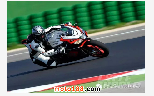 RSV4的官方測試在意大利北部里米尼的米薩羅國際賽道進行,我們對RSV4 RF進行了四節的測試,每節20分鐘。米薩羅賽道包括了從低速到高速的各種類型彎道,還有一些難度較大的回形彎道,非??简炣囕v性能和車手技術。