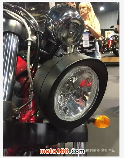 印第安展區一側是勝利展區,和印第安一樣目前展示車型均為美版銷售車型。讓人驚喜的是美版維加斯的輪轂、車身漆面、大燈均有所改變,槍手、刺客的顏色配置較今年沒有變化。