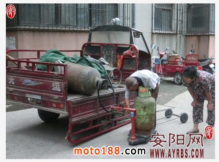 核心提示:移動充氣站老板正為空液化氣罐充氣。 8月3日,家住市中州路南段安運駕校家屬院的居民王先生告訴記者,他所住的小區沒有通天然