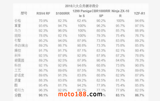 RSV4幾乎所有性能方面都有提升,走在了川崎和本田的前面。