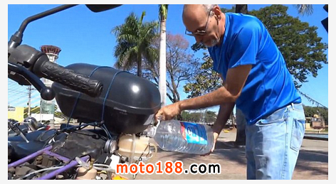 國際在線專稿:據阿根廷taringa網站8月4日報道,巴西公務員里卡多·阿澤維多制造出一輛以水作為燃料的摩托車,只需一升水可以行駛500公里路程。