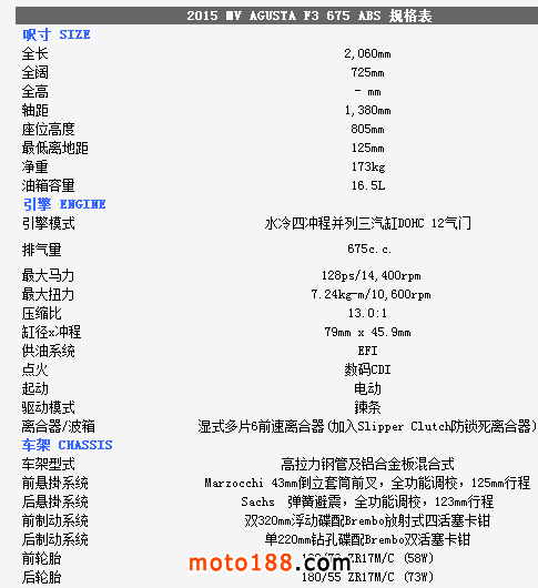 2012推出的 MV AGUSTA F3 675三缸跑車,已成功在600市場(chǎng)佔(zhàn)一席位,之后引伸出F3 800、BRUTALE 675、800、RIVALE 800、BRUTALE 800 DRAGSTER、STRADALE 800、TURISMO VELOCE 800等等同屬三缸車款。為了提升F3在高速拖波時(shí)的順暢度,2015版新增Slipper Clutch防鎖死離合器。