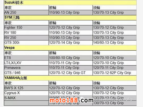 Michelin 在頗具高評價的重車胎之外,近來也積極布局臺灣小車市場,已經(jīng)引進一陣子的City Grip 系列,在歐洲是許多車廠指名使用的原廠配胎,著重在耐磨耗、晴雨適用的高規(guī)格通勤胎,隨著VESPA、 APRILA 等歐式速克達(dá)在臺灣逐漸打開市場,臺灣車友應(yīng)該也漸漸能看到這款輪胎的蹤影。
