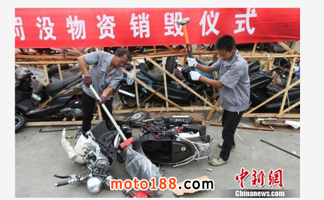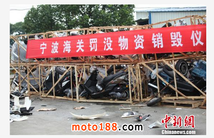 核心提示:圖為銷毀現場?!? 8月13日,寧波海關對47輛質量檢測不合格的走私摩托車進行集中銷毀。此次銷毀采取切割銷毀方式,銷毀產生的廢