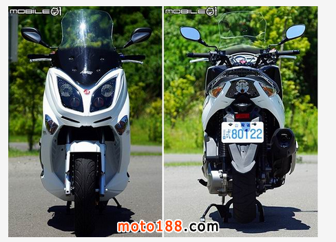 車頭與車尾部分,Elite 300E 并沒有因為售價較低而采用比較短的風鏡,而是同樣由 ERMAX 代工之長風鏡,對于長途中高速騎乘能提升舒適度,其他方面則比較大同小異,除了避震器明顯不同外,與 Eilte 300i 差異不是很大。