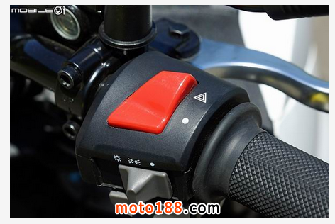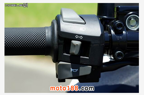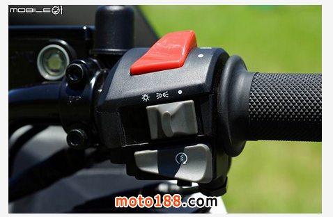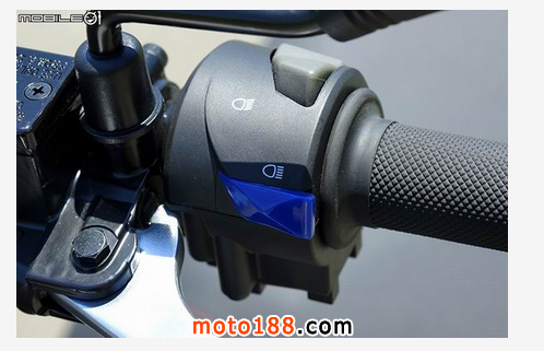 左把手前方配置超車燈開關,按下藍色的超車燈開關后,遠燈就會亮起。