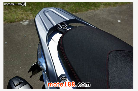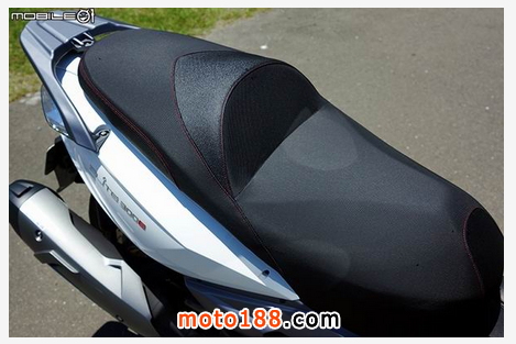 坐墊部分,Elite 300E 的前座座高為 790mm,座高方面還算平易近人;另外在坐墊皮革方面采用雙材質坐墊皮革,加上紅色線條滾邊,營造出不同的視覺感受。