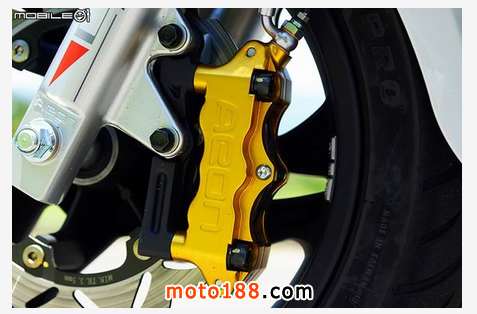 前輪煞車:對向六活塞輻射式卡鉗,搭配 265mm 固定碟盤。