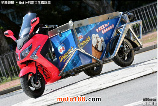 只要是香港人,一講起雪榚車,腦海馬上會聯想到兩種車:播著藍色多惱河音樂的軟雪榚車,和有一個巨形冰柜的三輪電單車。常見的三輪雪榚電單車,通常都是一位伯伯,開著偉士牌綿羊。所以當我們看見Emily開著她雪榚電單車時,簡直不敢相信自己的眼睛:賣雪榚的人,竟然由伯伯變為姐姐。偉士手波鐵殼二沖綿羊,也變為三陽SYM Joymax 300i自動波綿羊,世界真的變了。