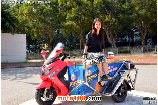 其實Emily本身是一位化妝師,工作時間頗具彈性,再加上懂得駕駛電單車,所以當政府在09年推出六十一個冰凍甜點流動小販牌照時,便決定入紙申請。當年申請情況非常踴躍,老編也有入紙,可惜輪候號碼是兩千多號,騎著電單車賣甜筒這個夢想總算是完全絕望了。相反地,Emily非常幸運地獲到較前列的輪候號碼,最後順利以後補形式,成功申請到這個珍貴的冰凍甜點流動小販牌照。
