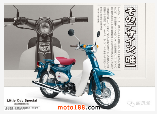 核心提示: Honda 向本土市場發布了采用立體商標的特別版 Little Cub 幼獸 。在車體配置上,這部特別版的 幼獸 與標準版相同,但車身