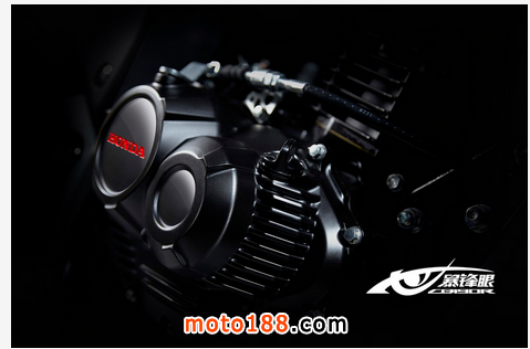 動力性能: 1、搭載的是HONDA在國內首次投入的,也是全球同步的核心3#發動機; 2、針對中國的市場,提升了低速的扭矩,通過加長活塞行程來實現, 在這些基礎上,我們通過緊湊型設計,保證了發動機的重量、尺寸沒有增加。 3、我們首次采用了針刺型缸套來保證機油消耗量。 4、在搖臂上使用了高成本的管針軸承,通過減小摩擦降低油耗,同時也提高壽命。 5、另外在高端車常見的平衡軸上,將單側大型平衡塊改為雙側小型平衡塊,在保持平衡效果不變的前提下,通過減少平衡塊對機油的攪動損耗,降低油耗。 6、在加上HONDA獨有的PGM-FI電噴的采用,暴鋒眼CB190R擁有堪比250排量的加速性能和小于150排量的油耗,我們稱之為黃金排量。