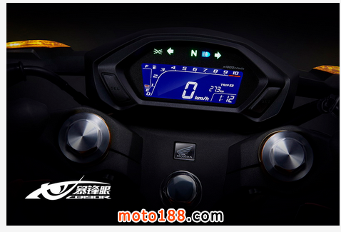 整車裝備: 1、暴鋒眼CB190R是首款全LED的摩托車,全車沒有一個燈泡。LED的壽命是燈泡的50倍,按照一天2小時,一周7天的使用頻率來講,可用將近7年的時間。 2、手把操作按鍵顯示,采取汽車級LED發光顯示,有白天和黑夜兩種模式 ,雖然在汽車上比較普遍,但是在摩托車上使用卻是一次。因為在這樣小的一個開關內加入足夠的光源,要保證發光均勻的同時還要保證其防水、防銹的性能,這真的是一件非常困難的事情,這也是本田二輪有史以來的第一次。 3、儀表設計成有新意的白字負顯模式,在背光顏色的選定中,為了在白天看得更清楚,在多種顏色中最終確定了深藍色,看上去深沉中又帶有優雅。 4、底盤設計中,特別開發的子午線輪胎實現了輕量高剛性,配合此級別最大的寬胎尺寸,優化了轉彎性能以及外觀造型; 5、倒立式前減震的采用,讓前側剛性得以提升,旋轉性能也得到加強。 6、采用大直徑波浪型剎車碟,提高了冷卻性能,使剎車距離更短,也讓外觀造型更為炫酷。 7、隱藏式短消聲器、隱藏式后扶手等等的裝備細節 ,都是針對亞洲人的人體工程學而設計的。
