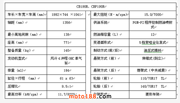 兩款新車型的車身和發(fā)動機均采用了全新的設計。作為運動款車型,動感十足、外觀前衛(wèi),并在高剛性車架上搭載了相匹配的全新風冷190cc發(fā)動機,使得CB190R、CBF190R獨具魅力、充滿新意,勢必成為無數(shù)摩托車愛好者追逐的新寵。