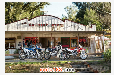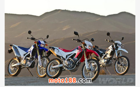 為了廣大車友在挑選探險(xiǎn)工具時(shí)不至于迷茫,我們挑選了三臺(tái)具有代表性的運(yùn)動(dòng)越野車進(jìn)行一次對(duì)比測(cè)試,希望對(duì)車迷們?cè)谶x車時(shí)會(huì)有所幫助。很大程度上來(lái)說(shuō),這三款車均是現(xiàn)代高科技產(chǎn)物。它們分別是售價(jià)4499美元的Honda CRF250L,售價(jià)5099美元的Kawasaki KLX250S,以及三者中售價(jià)最高的Yamaha WR250R,6990美元。