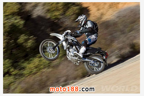 Honda CRF的座高是三者中最低的(34.4in),如果你個(gè)子不高,選擇這臺(tái)車絕對(duì)沒(méi)錯(cuò)。同時(shí)CRF順暢的燃油供應(yīng)以及出色的中轉(zhuǎn)扭矩使得它操控簡(jiǎn)單,極易上手。Yamaha WR250R的座高為36.6in,搭載著一臺(tái)高轉(zhuǎn)速發(fā)動(dòng)機(jī)。雖然雅馬哈不再生產(chǎn)WR250X,但R版本同樣擁有X版本在瀝青路面上的出色表現(xiàn)。新車友可能會(huì)被R和X混淆,以為R是racing,X是motocross。其實(shí)WR250R是配上21英寸前輪18英寸后輪和采用菠蘿胎的越野版,WR250X是前后輪17英寸、低座位和采用街胎的街道版。
