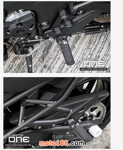 KAWASAKI Versys 650除了新外型及新增馬力外,油缸容量也由舊款19升增至21升,可增加續(xù)航能力。吸震系統(tǒng)也得到升級,新的41mm前避震采用現(xiàn)時流行的左右獨(dú)立調(diào)校 前叉,預(yù)載調(diào)校設(shè)於左前叉頂上,回彈調(diào)校則設(shè)於右前叉頂上,單筒尾避震新增外置預(yù)載旋鈕,使調(diào)校時更方面。