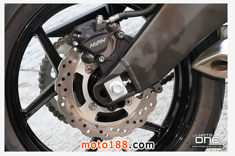 ●300mm菊花煞車碟配新設(shè)計(jì)的NISSIN煞車卡鉗。