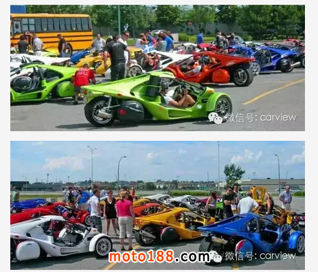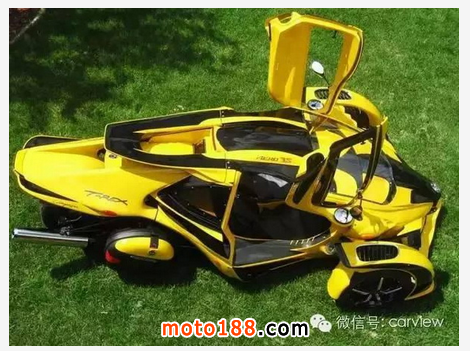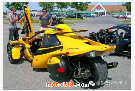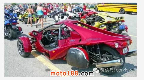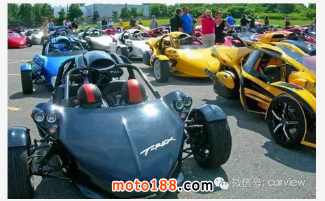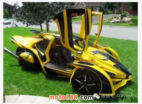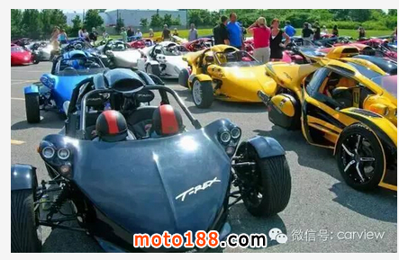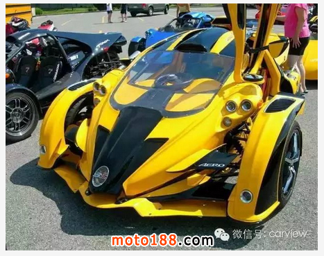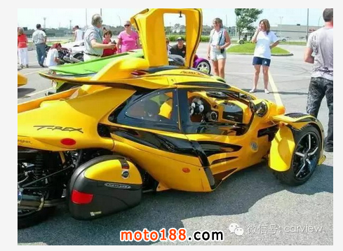 世界上最快的三輪跑車非 T-Rex 莫屬,性能絕對不比超跑要差。來自加拿大的Campagna T-Rex采用了鋼管構造的車身,動力搭載一臺1.2升的四缸DOHC發動機通過6檔順序變速箱為它提供動力,最大輸出的最高馬力是197匹,前懸掛采用的是不等長三叉臂+防傾桿以及防傾桿可調節阻尼器+螺旋彈簧的設計;后懸掛則采用拖拽臂以及可調節阻尼器+螺旋彈簧的設計。整車長寬高分別為3500m、1981mm、1067mm,軸距2286mm,車重僅410kg,油箱容量28升。性能方面,0-100km/h僅需3.9秒,最高時速達241公里,Campagna T-Rex的車身材料是玻璃纖維加強塑料。
