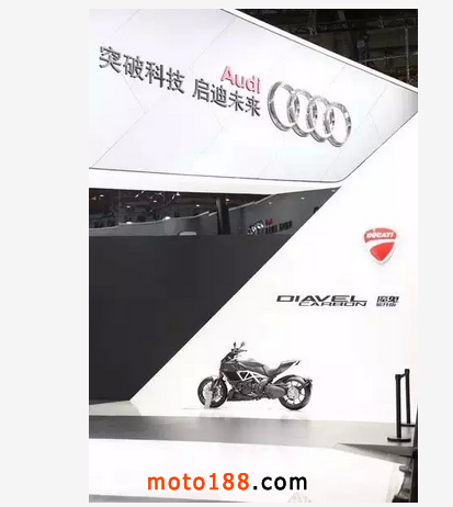 意大利頂級摩托車品牌 Ducati 杜卡迪攜旗下2015 款 Diavel 魔鬼的旗艦車型 Diavel Carbon 魔鬼碳纖版亮相第十八屆成都國際汽車博覽會五號展館奧迪展臺,這也是本年度繼上海車展、長春車展以來,杜卡迪和奧迪第三次在國內重要車展上聯袂亮相。此次的參展車型為 2015 款 Diavel Carbon 魔鬼碳纖版。