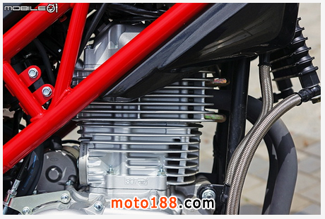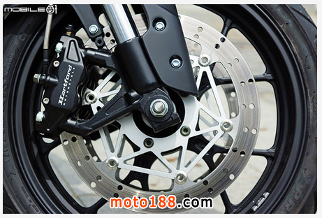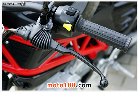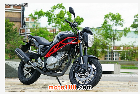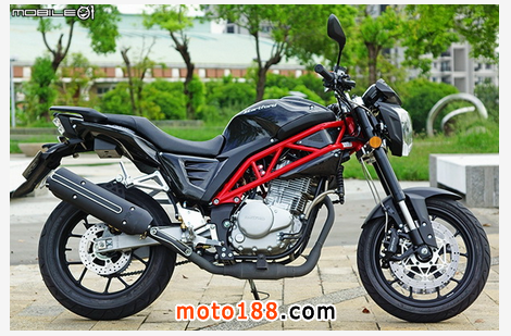 車輛的左側(cè)與右側(cè),鋼管編織車臺以紅色烤漆搭配,相信一開始就吸引不少人的目光,接著會看到前避震器使用倒立式前叉與雙碟配置,而且雙碟還采用輻射固定式對向四活塞卡鉗與金屬油管配置,讓人不注意都難,另外后搖臂與輪框造型也算是國產(chǎn)街車中用料與設計都蠻有意思的,厚實鋁合金搖臂與造型更簡約的輪框組,在這個售價之中更顯超值。