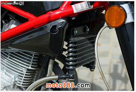 后煞車總泵位于翼型保護塊后方,總泵采用液壓煞車燈開關,可以省去調(diào)整傳統(tǒng)彈簧煞車燈開關的彈簧張力的問題,并且后煞車也采用金屬油管,省去一筆改裝費用,也增加耐用程度。