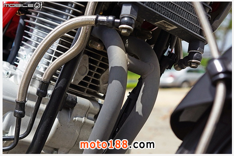 雖然哈特佛 Falcon 400 是一臺單缸車款,但排氣管頭段卻使用雙缸車款才需要的兩支排氣管頭段,據(jù)哈特佛研發(fā)部門表示,因為 400 排氣量較大,若做單排氣管頭段的話,頭段直徑會非常粗,加上為了讓排氣更順暢,讓一汽門可以對應一排氣管頭段,這樣可以再增加一些引擎效率,同時也可以閃過火星塞安裝位置,讓引擎保養(yǎng)更簡單。