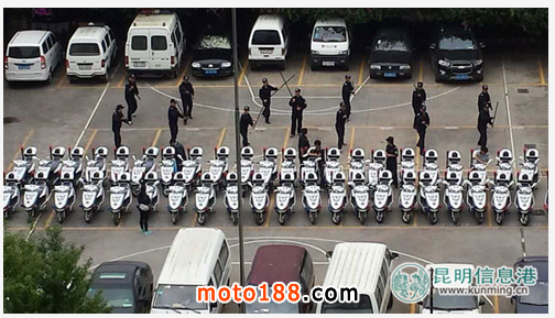 核心提示: 最近幾天,摩托車(chē)已經(jīng)成為了昆明街頭巷尾熱議的話(huà)題,這不,昆明官渡警方的警用摩托也上路巡邏了。17日下午,50輛警用摩托車(chē)