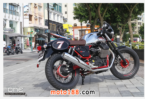 今次拍攝的地點(diǎn)經(jīng)代理協(xié)商后,最終決定與V7 II車系相同歐陸意式情懷的赤桂大街進(jìn)行,該處美景與陽光普照的環(huán)境下,V7 II車系顯得更為耀眼,由其是多處電鍍處理的V7 II Racer ABS限量版,如鏡子般反射閃閃生輝的光芒。另外,V7 II Special、STONE車款也與完全配合酒巴街的環(huán)境氣氛|展示歐陸意式的情懷。